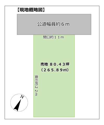 具同小まで徒歩約6分(400m)の好立地 間口約11m