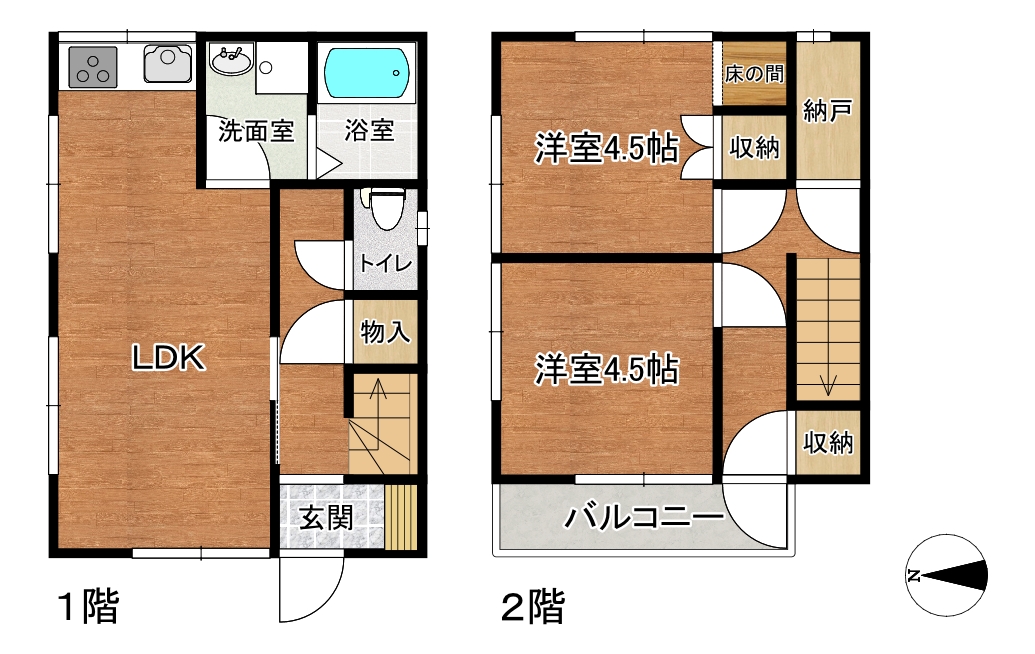 | 間取詳細 | 1F LDK 2F洋室4.5帖 洋室4.5帖 | 階建/階 | 2階建/1,2階 |