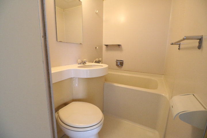 洗濯機はベランダ置き、ユニットバスです。共益費と駐車場1台分が含まれています。
